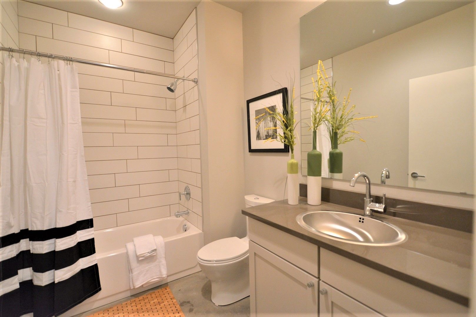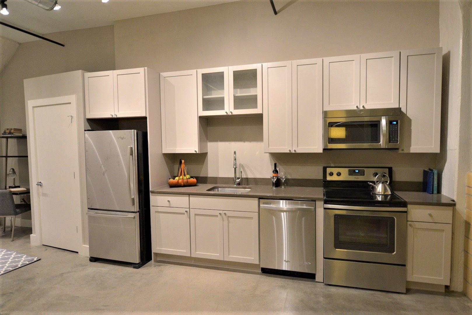 Each apartment comes with in-unit washer/dryer, stainless steel appliances, designer kitchens, quartz countertops, and efficient LED lighting throughout. Most of the apartments also feature a kitchen island, and some have a sidebar with additional cabinetry above. Complimentary bike storage is provided on the 1st floor for easy access, and there are storage units for rent for $35/month in the garage.