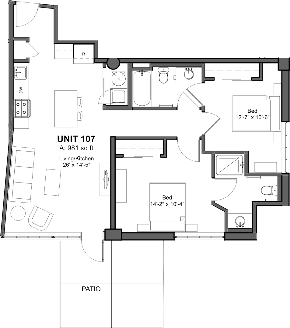 Each apartment comes with in-unit washer/dryer, stainless steel appliances, spacious kitchens, quartz countertops, and efficient LED lighting throughout. Most of the apartments also feature a kitchen island, and some have a sidebar with additional cabinetry above. The building has an elevator to make moving easier, as well as a trash chute on the 2nd and 3rd floors so you don't have to lug your garbage all the way to the dumpster in the garage. Complimentary bike storage is provided on the 1st floor, along with dedicated storage enclosures in the garage for $35/mo, pending availability.