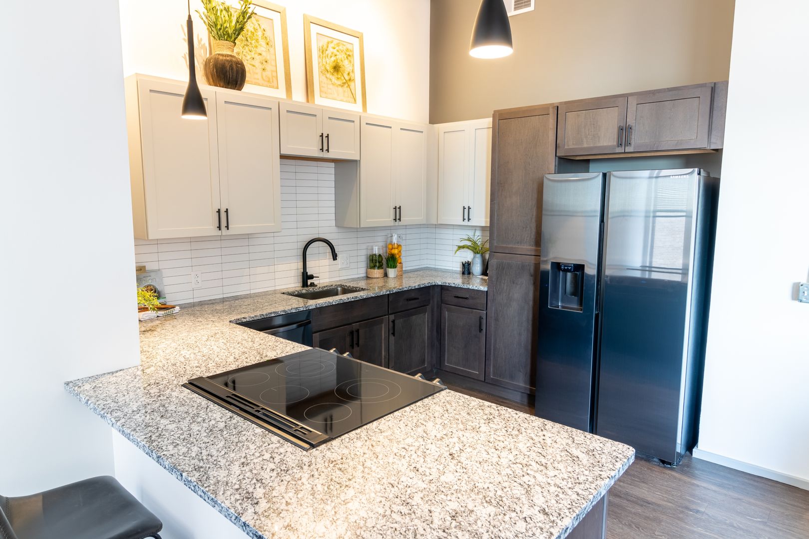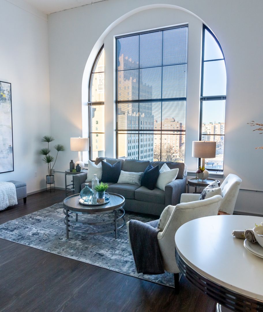 Our elegant apartments feature stainless steel Samsung appliances, granite countertops, and oversized windows with blinds that offer stunning downtown views, with up to 14' ceilings to create an open and airy atmosphere.